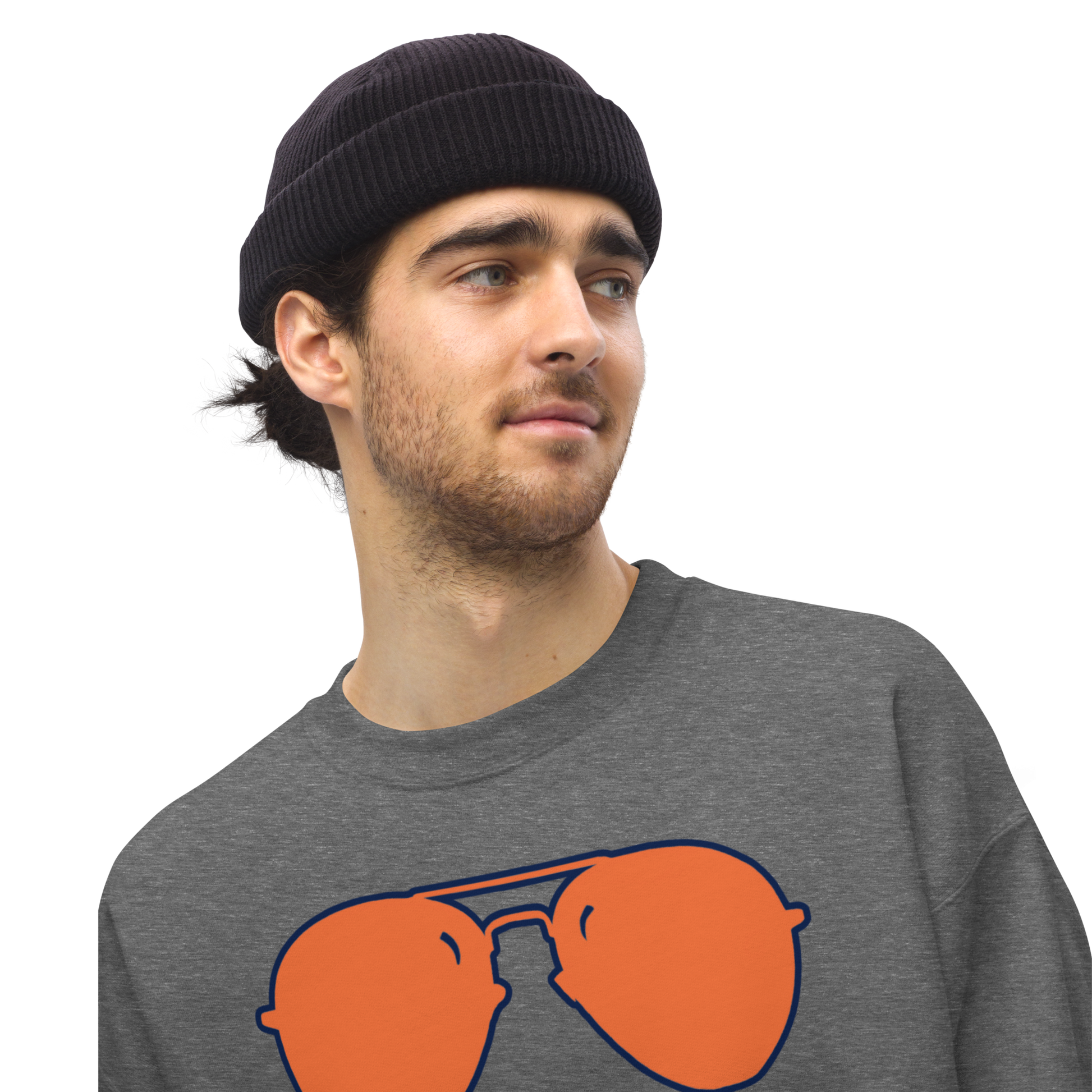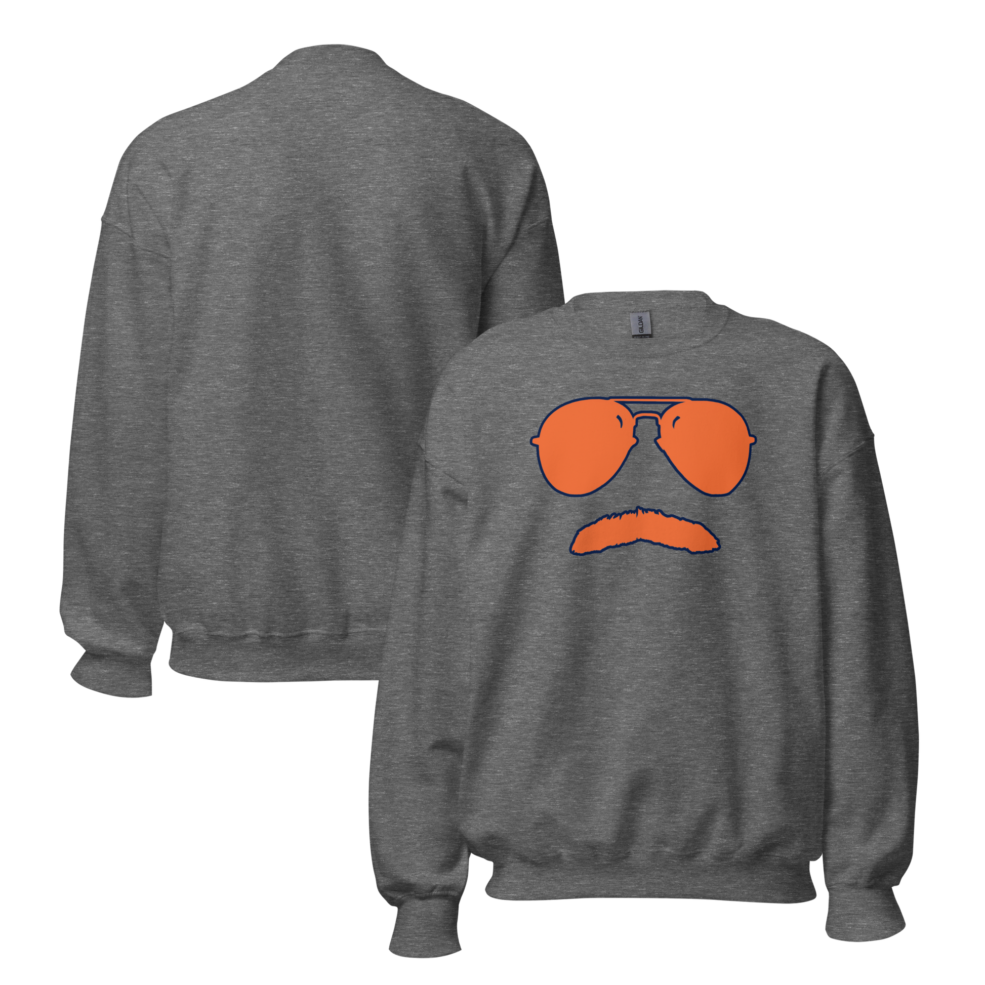 Swerski Stache and Shades Logo Unisex Sweatshirt - New Charcoal with Orange/Navy Logo