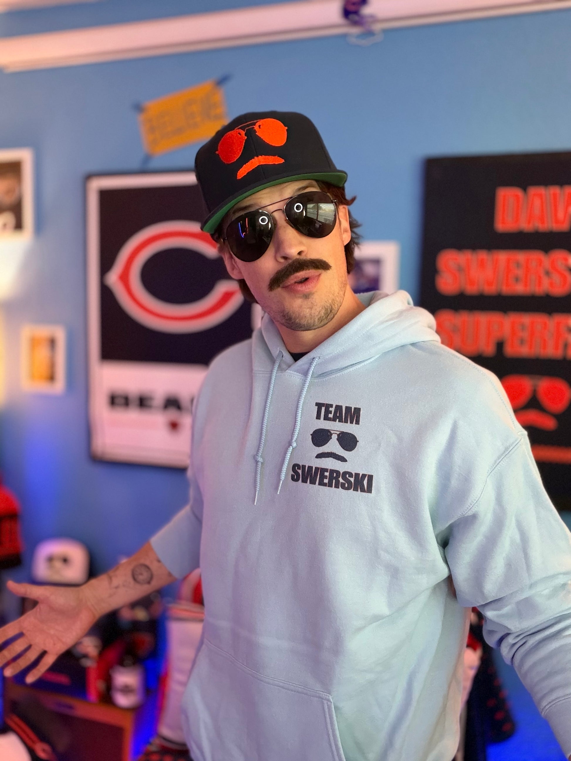 Team Swerski Small Logo Hoodie - Light Blue with Navy and Orange Logo